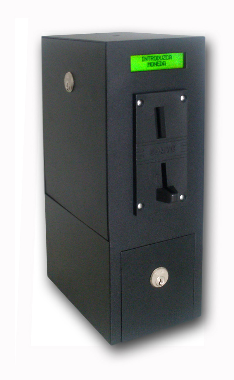 Posee un monedero electrónico multimoneda de 16 canales para la programacion de monedas, fichas o cospeles. Suma el dinero ingresado y acredita tiempo. Todo el proceso es indicado en un display LCD con textos programables. Se programa mediante el software gratuito NEXUS C-10.